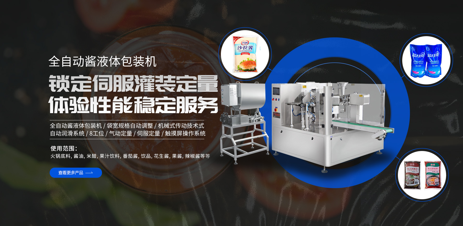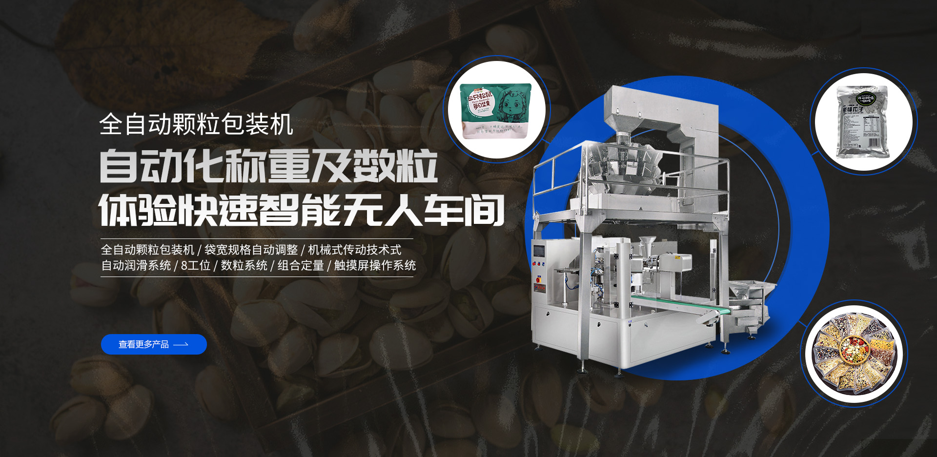 以上多種不同功能的包裝生產(chǎn)線設(shè)備(粉末包裝機(jī)、給袋式包裝機(jī)、全自動包裝機(jī)、顆粒|液體|食品|醬腌菜包裝機(jī)),請根據(jù)需求選擇,如有疑問請聯(lián)系我們的顧問